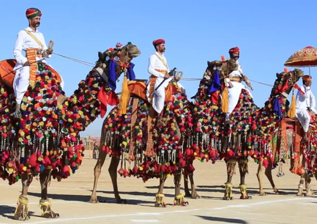 The festival also features a series of exciting competitions, including the famous turban tying contest, where participants display their skills in crafting intricate turbans, a symbol of Rajasthan’s identity. Additionally, the Mr. Desert contest and the camel decoration competition add a unique charm to the festivities.